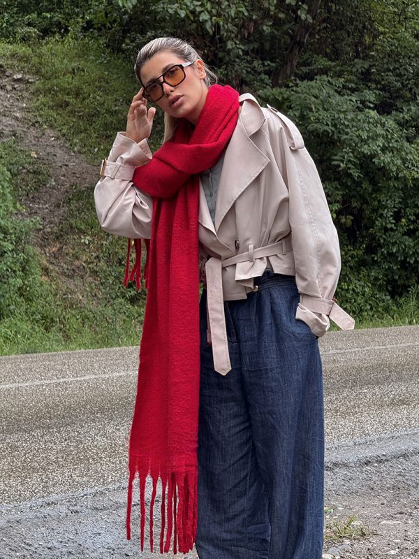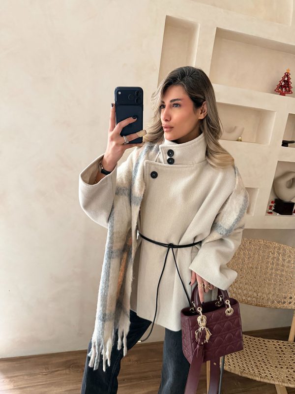 شال کرم انتخابی خنثی و شیک است که بهراحتی با رنگهای گرم و سرد ست میشود و جلوهای ملایم و مینیمال به استایل میدهد.