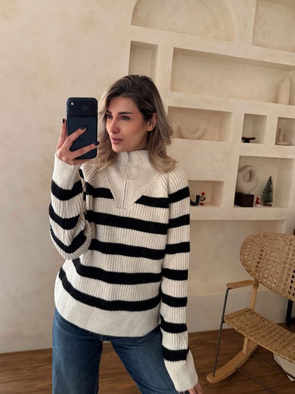 پلیور نیم زیپ ZARA کرم مشکی