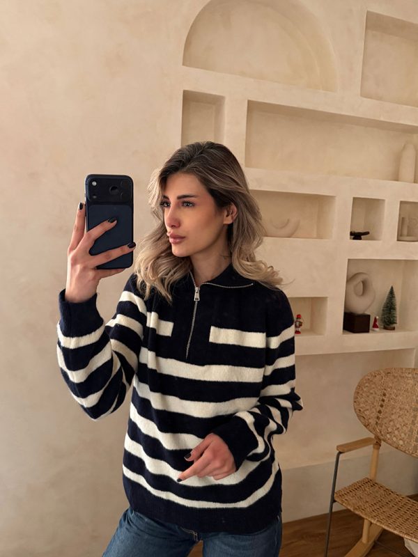 پلیور نیم زیپ ZARA سفید سرمه ای
