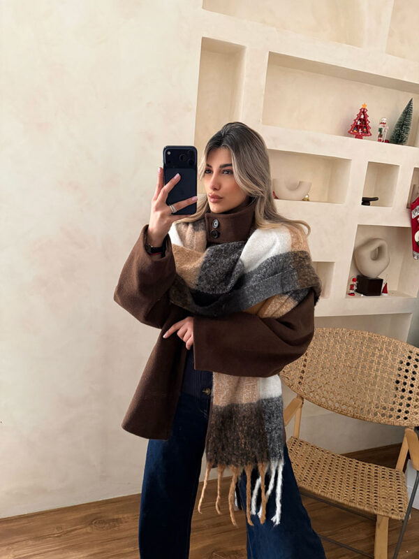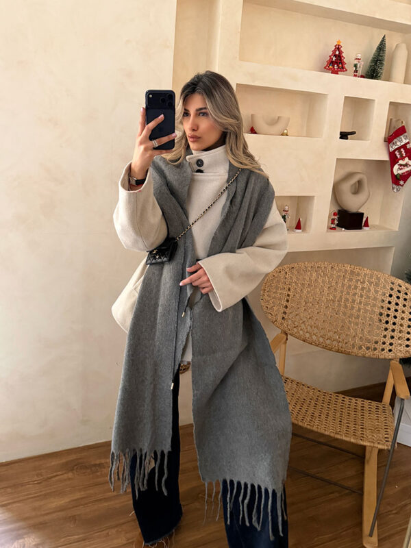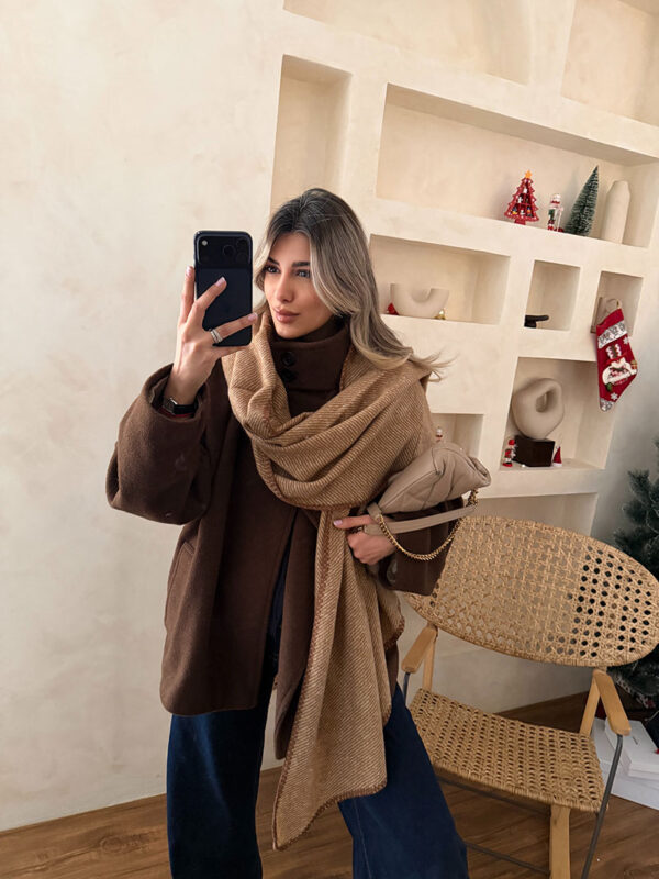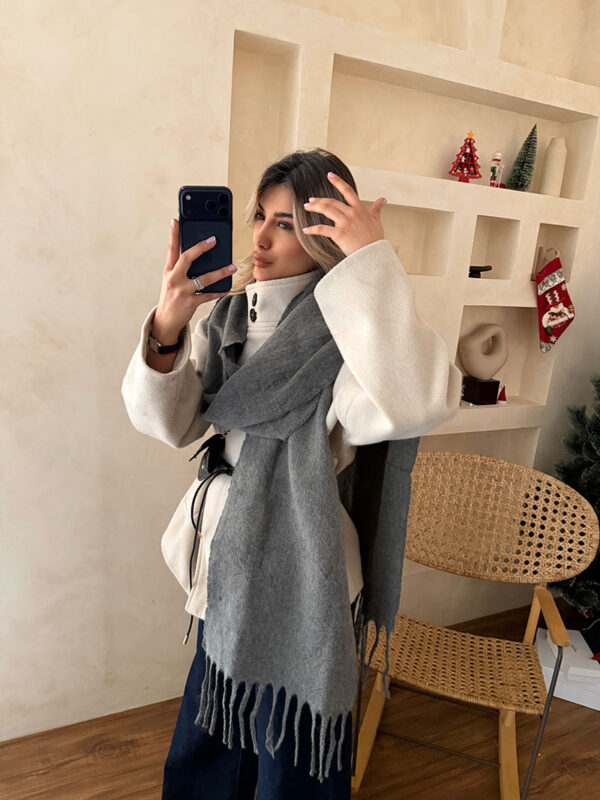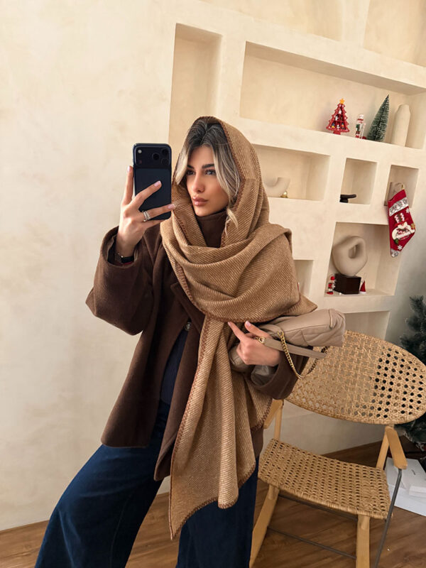 شال کرم انتخابی خنثی و شیک است که بهراحتی با رنگهای گرم و سرد ست میشود و جلوهای ملایم و مینیمال به استایل میدهد.