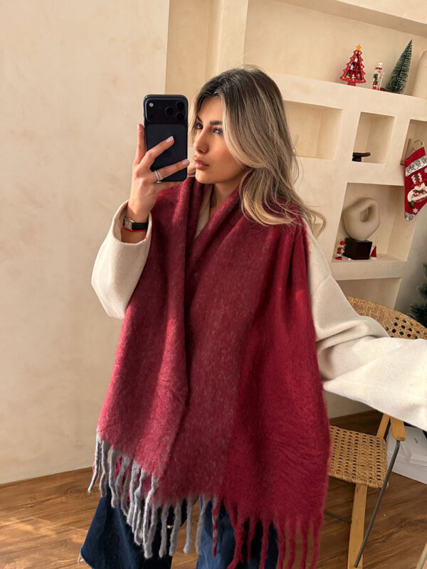 شال صورتی انتخابی خنثی و شیک است که بهراحتی با رنگهای گرم و سرد ست میشود و جلوهای ملایم و مینیمال به استایل میدهد.