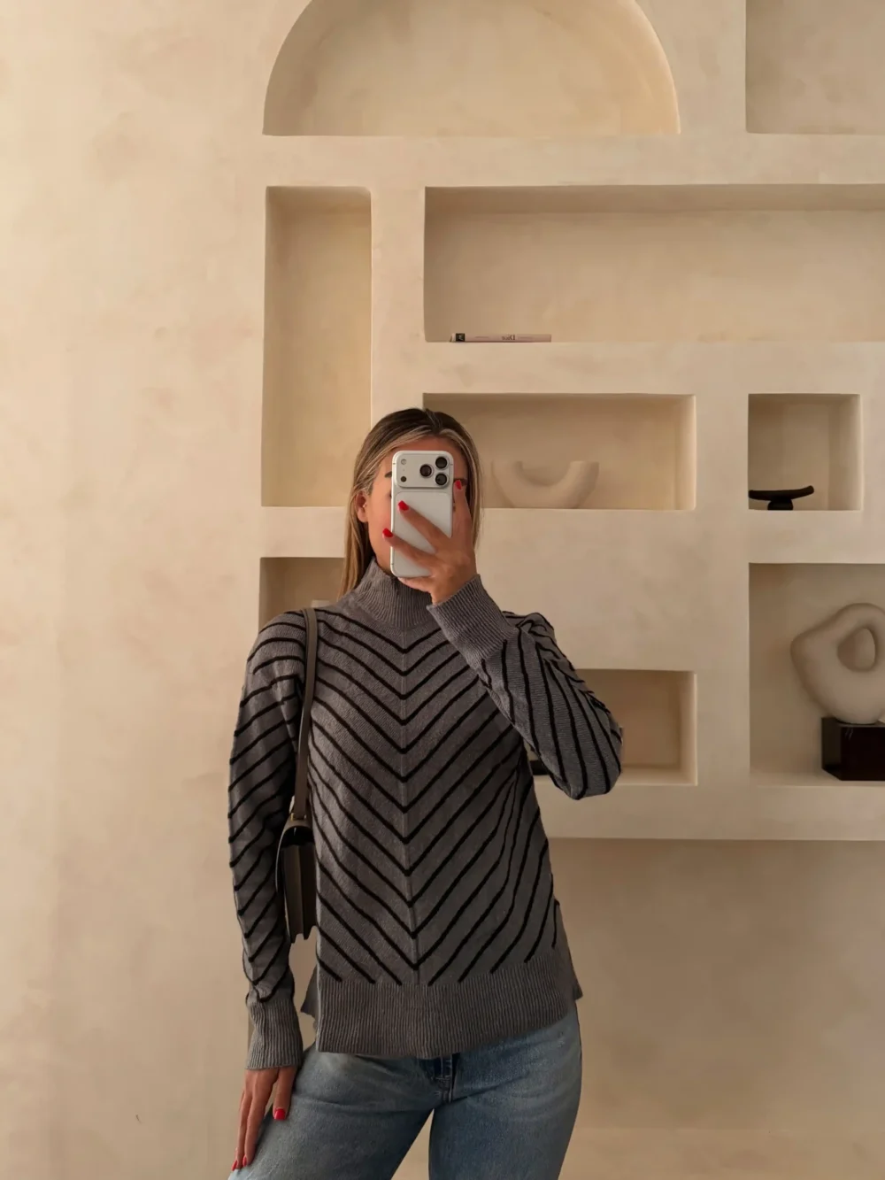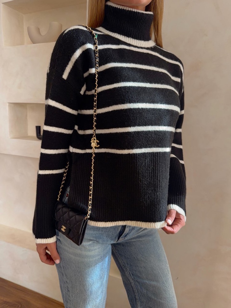 پلیور یقه اسکی راه راه مشکی سفید