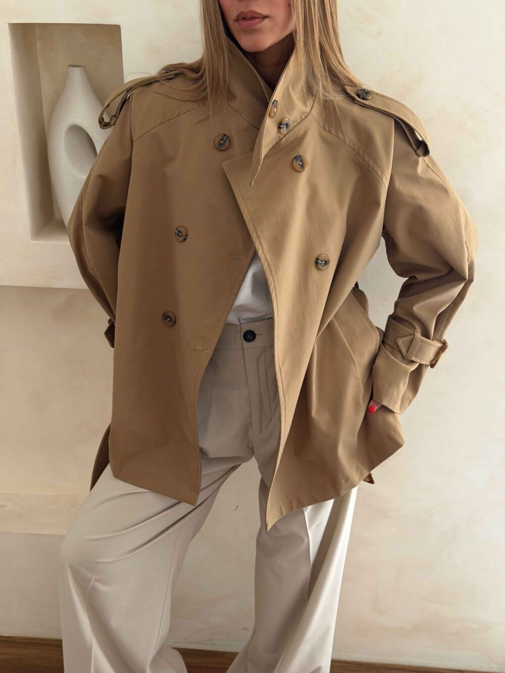 قیمت اصلی: 2,690,000 تومان بود.1,890,000 تومانقیمت فعلی: 1,890,000 تومان.ترنچ کت نسکافه ای یقه ایستاده