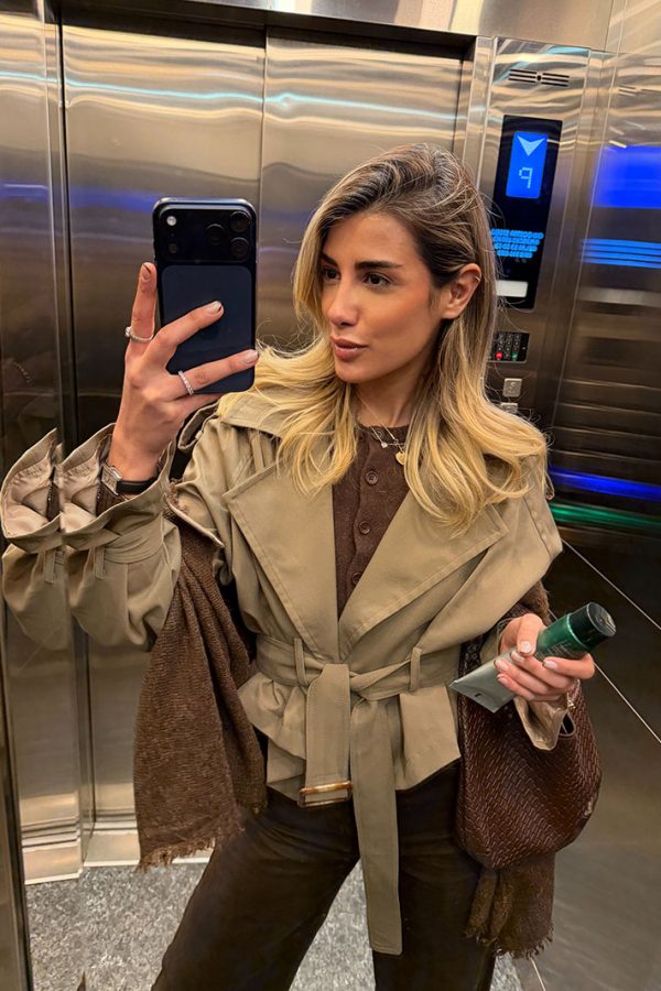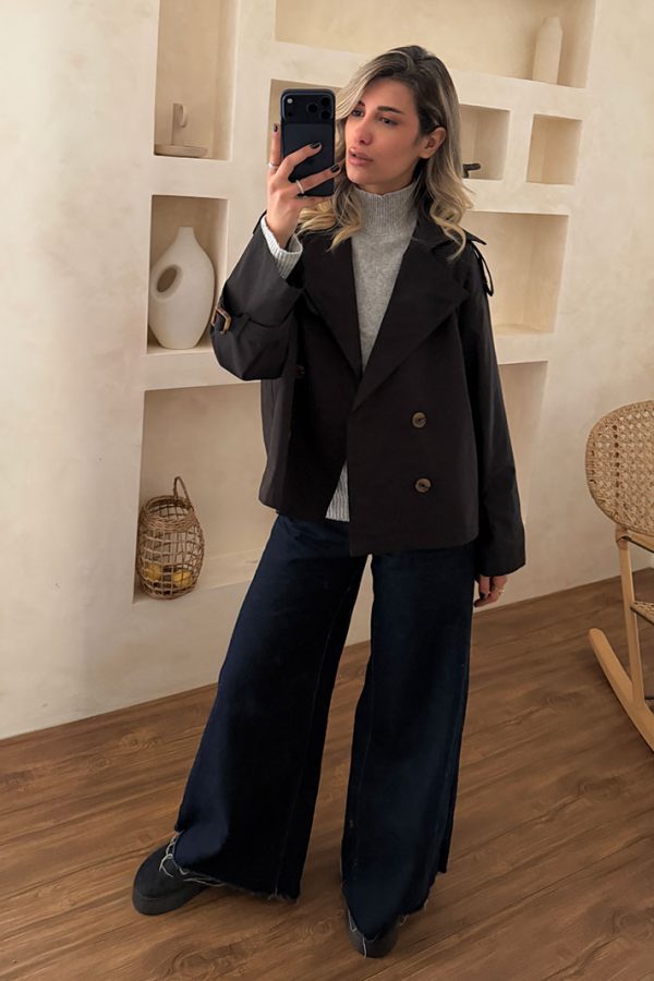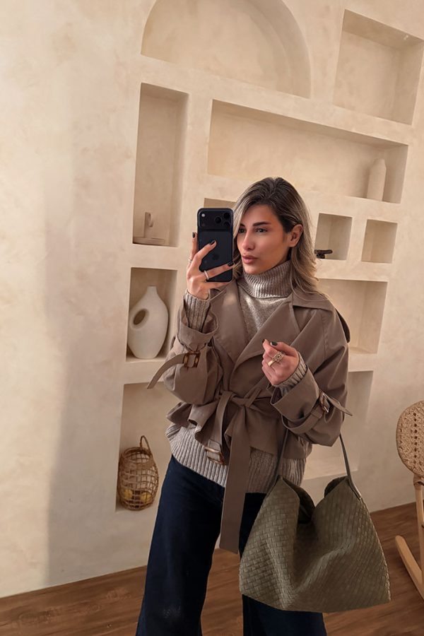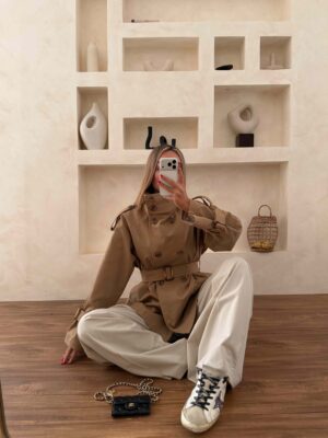 یک نکته ای که در استایل با ترنچ کت کوتاه وجود دارد. این است که برای مهمانی ها هم گزینه مناسبی است و ترکیب آن با یک شومیز شیک یا پلیور بافتنی زیبا می تواند به یک استایل مناسب برای مهمانی تبدیل شود.