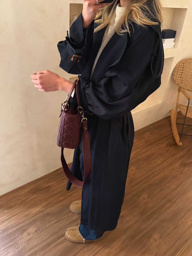 یک آیتم کلاسیک و همیشه‌مد روز برای استایل پاییز و بهار! این کت از پارچه‌ی کتان باکیفیت دوخته شده که هم خوش‌دوخته و هم راحتی در عین شیک‌پوشی رو براتون فراهم می‌کنه. طراحی بلند این ترنچ کت، استایلی کشیده و شیک ایجاد می‌کنه و با یقه‌ی شکیل و برش‌های تمیز، انتخابی بی‌نقص برای استایل روزانه یا رسمی محسوب میشه.