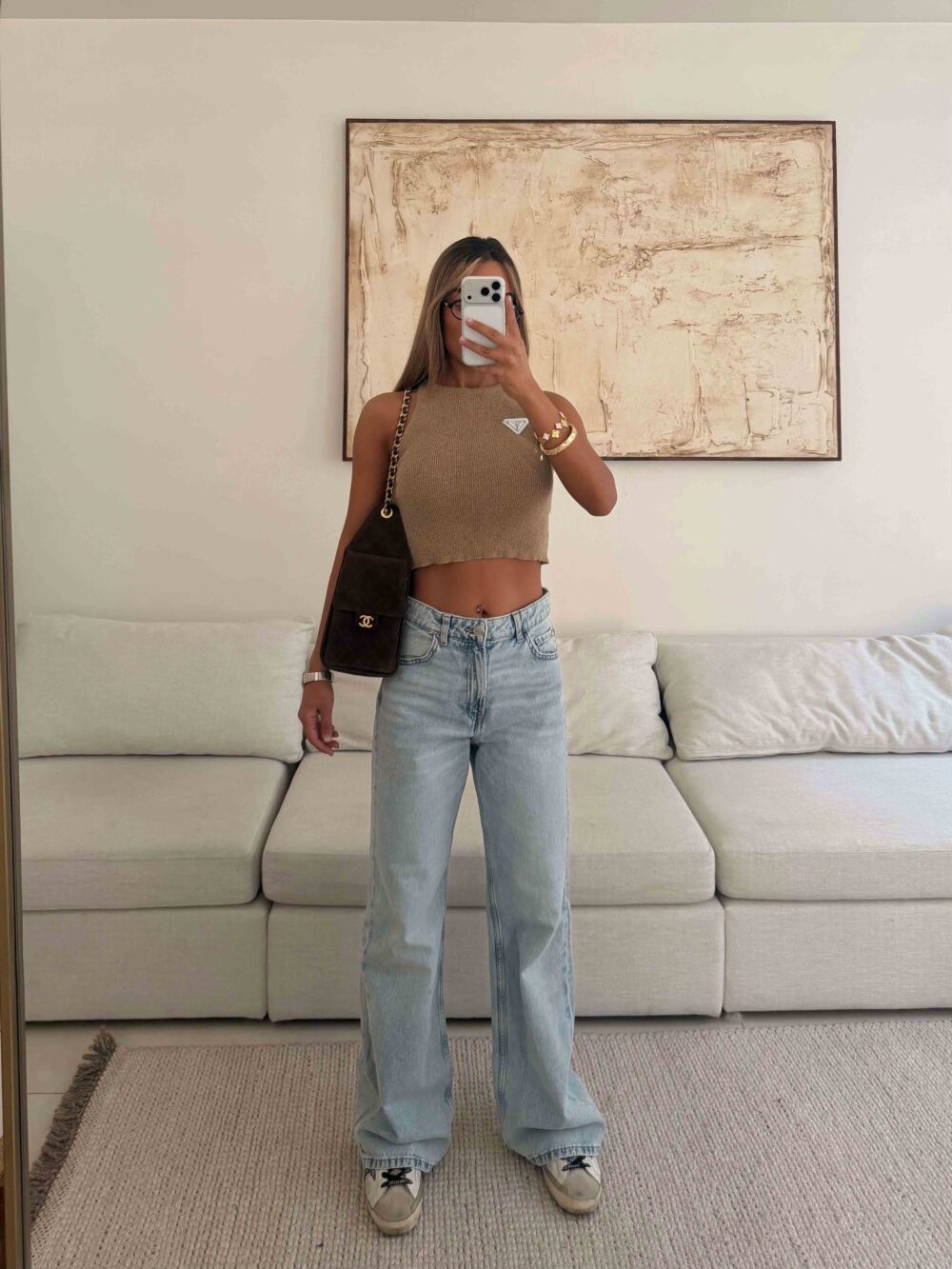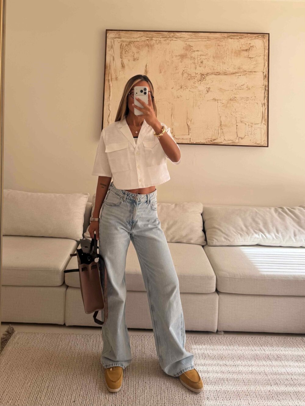 شلوار جین واید لگ کراپ Bershka | Clean Summer Fit