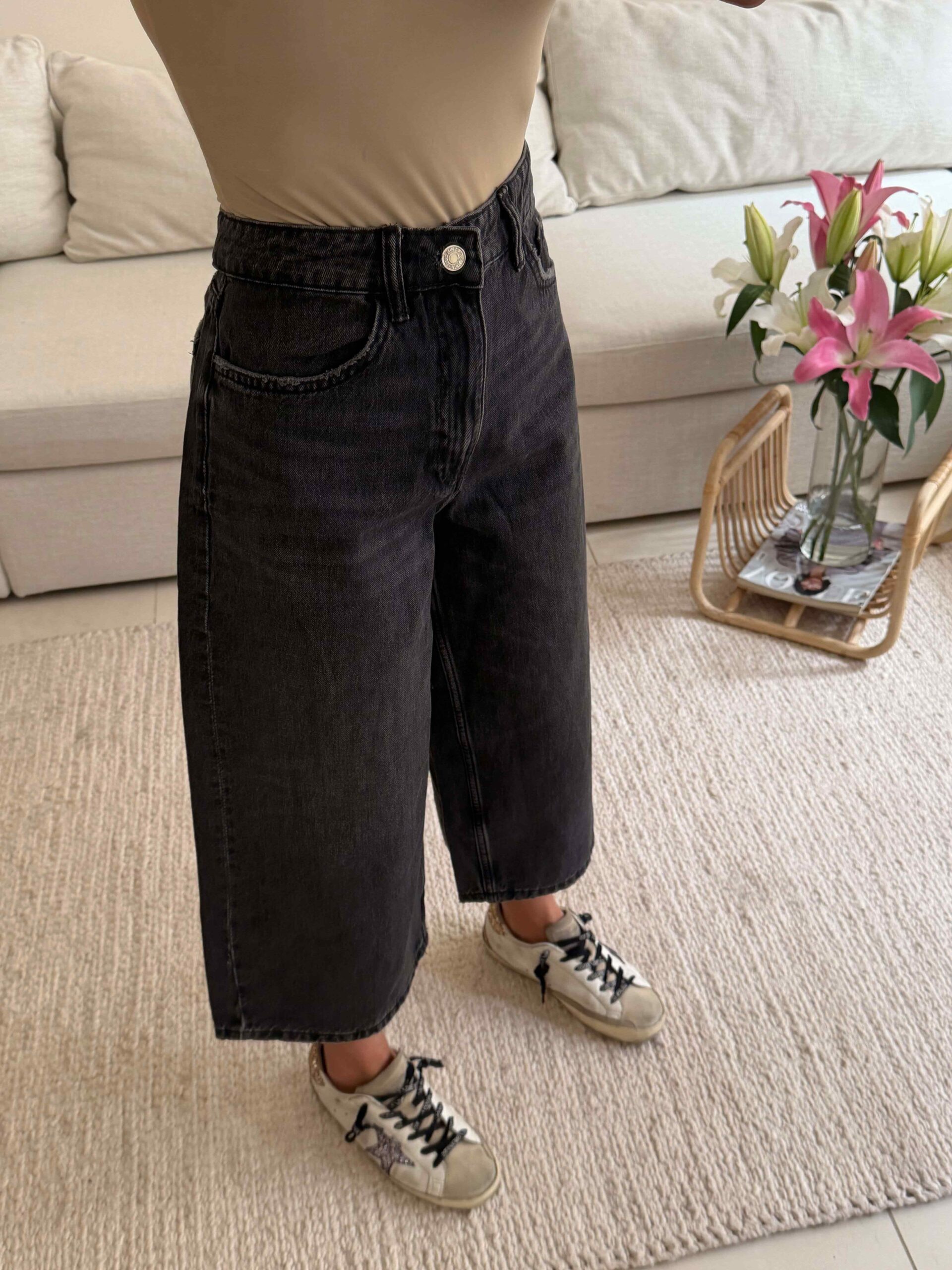 شلوار جین ZARA مدل Cropped Relaxed Straight رنگ مشکی ذغالی