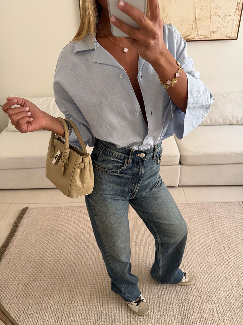 شومیز stripe لینن H&M رنگ سفید-سرمه ای