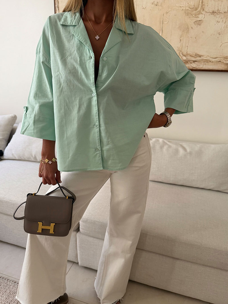 شومیز لینن H&M رنگ سبز پاستلی
