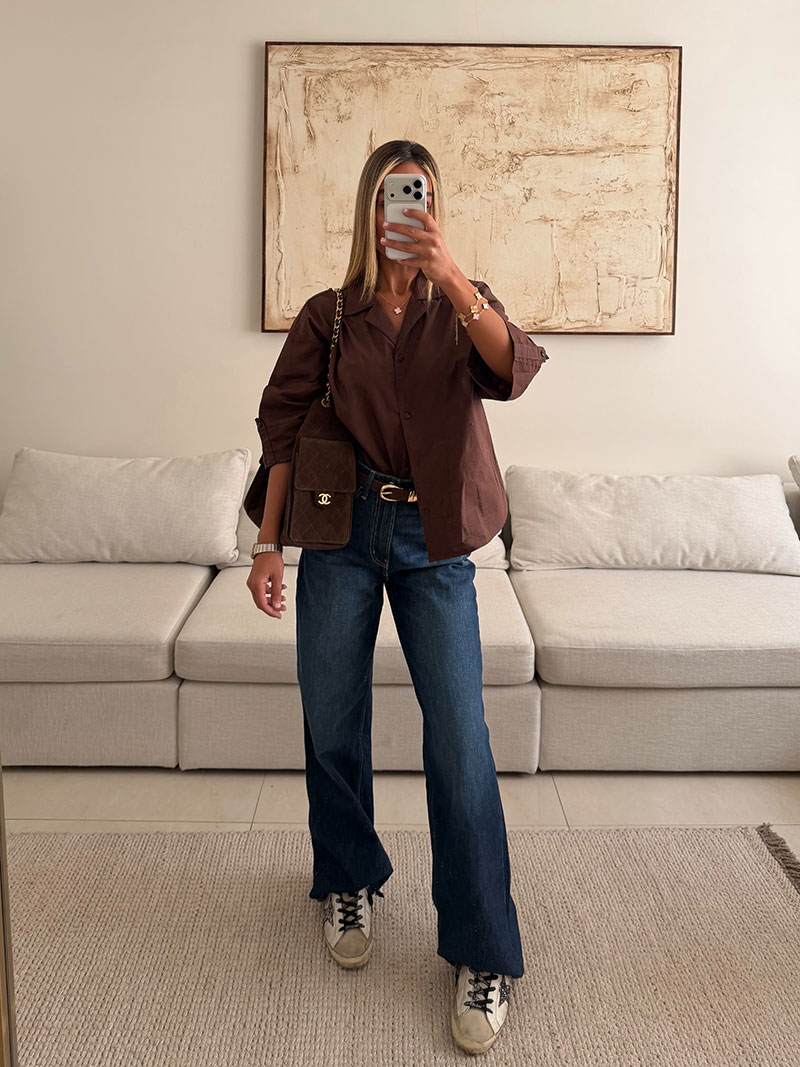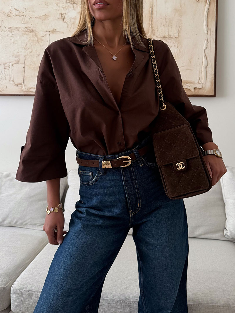 شومیز لینن H&M رنگ موکا تیره