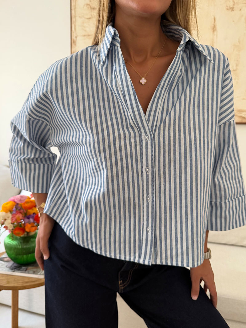 شومیز stripe لینن MANGO رنگ آبی