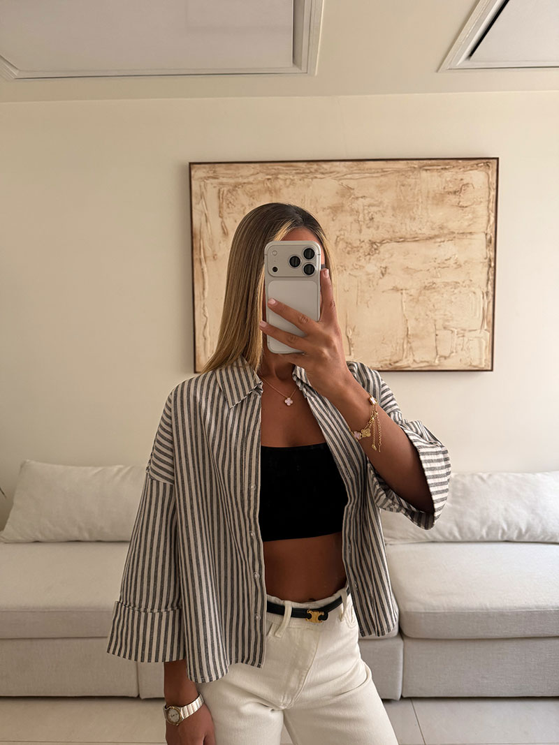 شومیز stripe لینن MANGO رنگ طوسی
