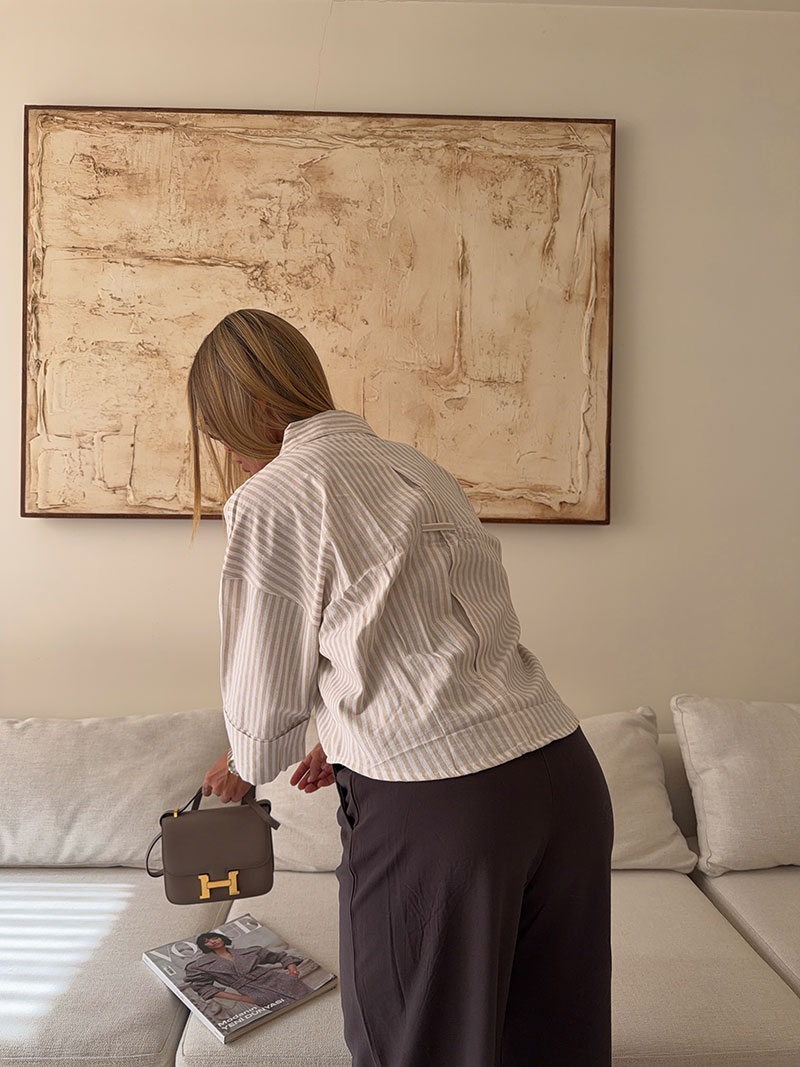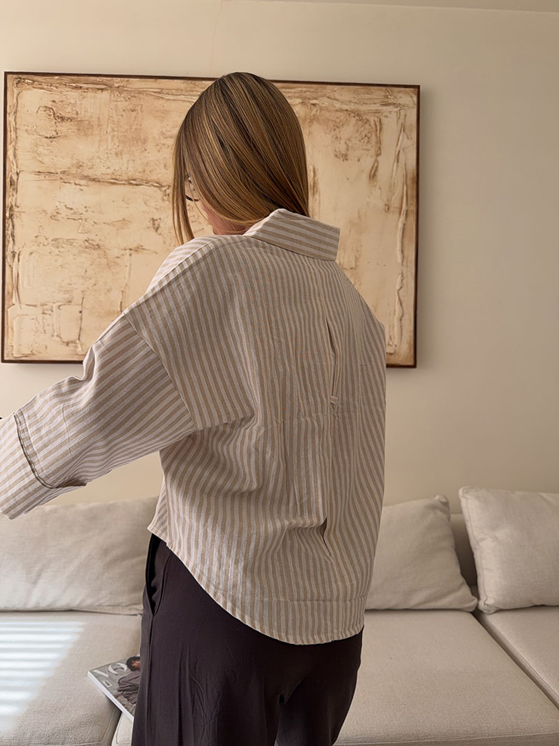 شومیز stripe لینن MANGO رنگ کرم