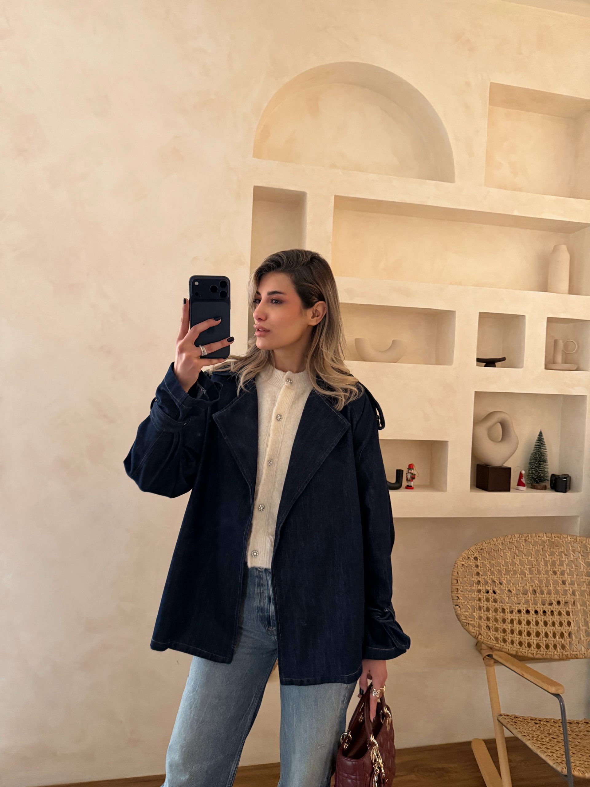کت جین سرمه ای متوسط
