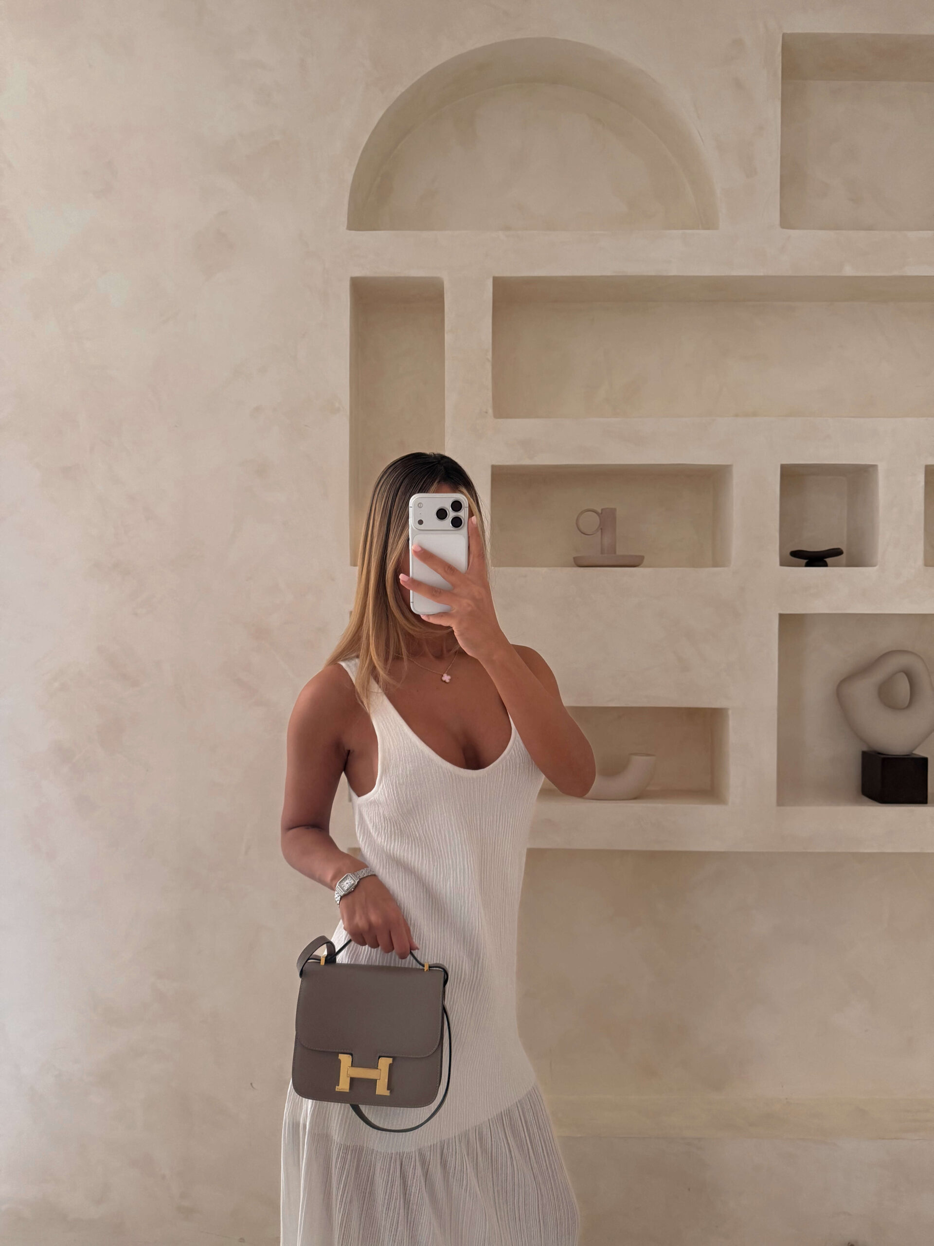 آیتمی که برای استایلهای داخلی (مانند ژست سلفی در فضای ساده با دیوارهای کرم و آینههای طلایی) یا گردشهای ظریف ایدئال است – ماندگار و چندمنظوره، برای ست با کیفهای لوکس که حس انحصار را تکمیل میکند.
