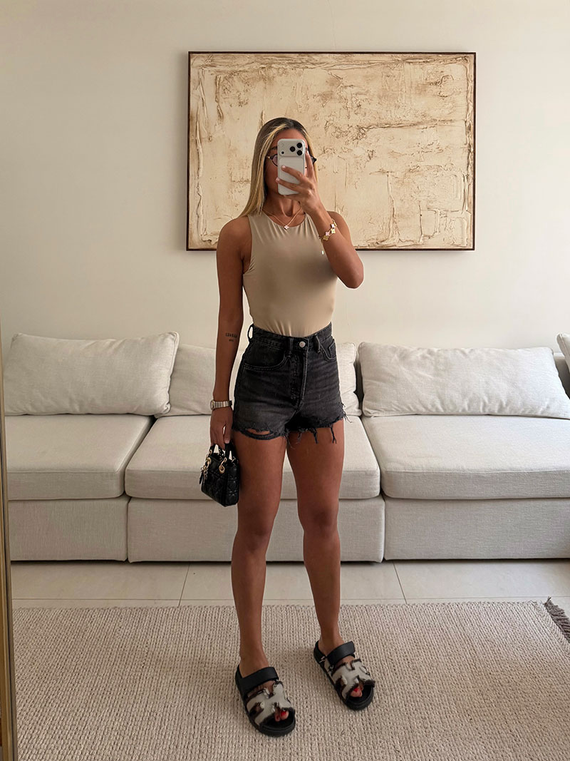 این شورتک جین آبی کلاسیک از ZARA، با پارگیهای عمدی و ریشریش لبهها، یه قطعه تابستونیِ eco-conscious است که استایل رو با حس اصیل و فرسوده بالا میبره — خنک، فیت متوسط و مناسب برای روزهای casual، از نمایش نزدیک بافت در سطح چوبی تا سلفیهای خانگی در فضاهای مدرن، با تمرکز روی پایداری (JOIN LIFE و صرفهجویی در آب).
